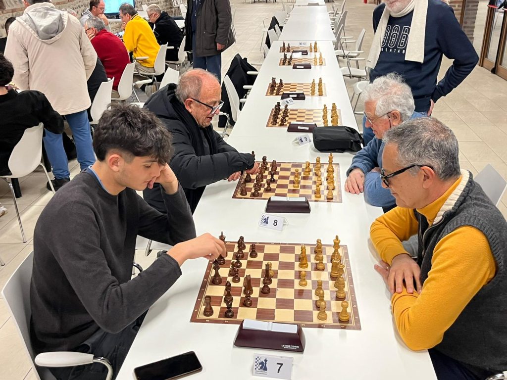 Vincitore a punteggio pieno 8 punti su 8 Fabio Colonetti (già campione del mondo 2023 nella categoria Blitz 9′), seguito da Gabriele Mangili (6,5/8) e Anas El Bzizi (6/8). Complimenti a tutti!
